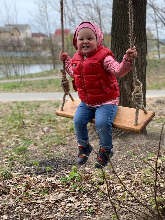 When we lived in Holland, Michigan, our backyard had a pink, homemade swing that hung by ropes from an old peach tree. It was crafted of scrap lumber, 16 inches wide by 10 inches deep with armrests on each side and backrest to keep her from falling out. It was just the perfect size for our 2-year old daughter. When the weather was nice, Elisabeth loved to swing in it.